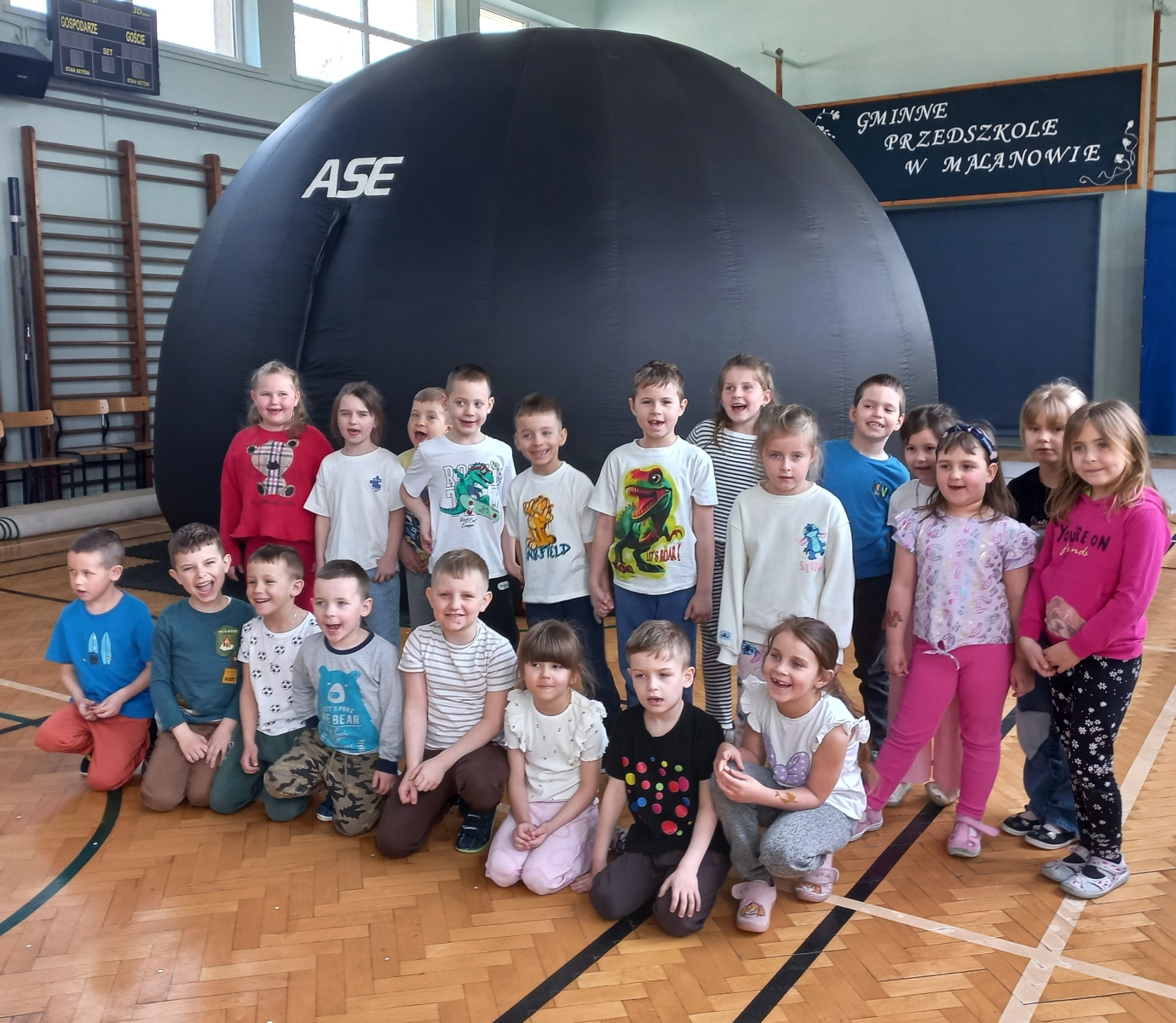 15 kwietnia nasze przedszkolaki wzięły udział w wyjątkowym seansie kina sferycznego pt. „Sekrety ekosystemów”. Specjalna kopuła, w której wyświetlany był film, przeniosła przedszkolaki w fascynujący świat przyrody, ukazując różnorodność środowisk oraz zależności między roślinami, zwierzętami i ludźmi. Podczas projekcji dzieci mogły poczuć się jak w samym centrum wydarzeń – otaczający obraz i dźwięk sprawiły, że doświadczenie było niezwykle realistyczne i angażujące. Przedszkolaki poznały tajemnice lasów, oceanów oraz innych ekosystemów, ucząc się jak ważna jest troska o naszą planetę. Seans dostarczył wielu emocji, rozbudził ciekawość świata i był cenną lekcją przyrody. Dzieci z zainteresowaniem uczestniczyły w wydarzeniu i chętnie dzieliły się swoimi spostrzeżeniami.