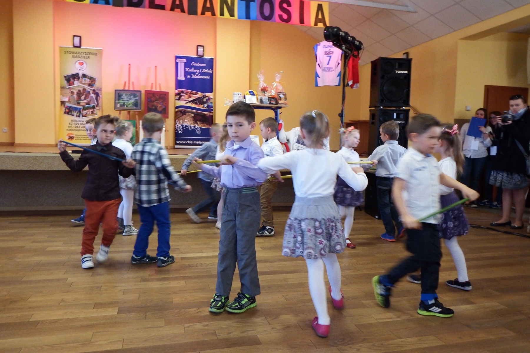 W niedzielę 12 kwietnia 2015 r. w świetlicy wiejskiej w Malanowie odbył się koncert charytatywny „Nadzieja dla Antosia” zorganizowany przez Stowarzyszenie Nadzieja i Centrum Kultury i Sztuki. W przebieg tego wydarzenia aktywnie włączyły się dzieci z naszego przedszkola i ich rodzice poświęcając niedzielne popołudnie dla szczytnego celu. Przedszkolaki z gr. IV i V zaprezentowały się przed publicznością w tańcach i piosenkach. Po występie radośnie korzystały z przygotowanych atrakcji m.in. malowania buziek. Mamy nadzieję, że i nasze przedszkolaki dały odrobiny nadziei Antosiowi i jego rodzicom.