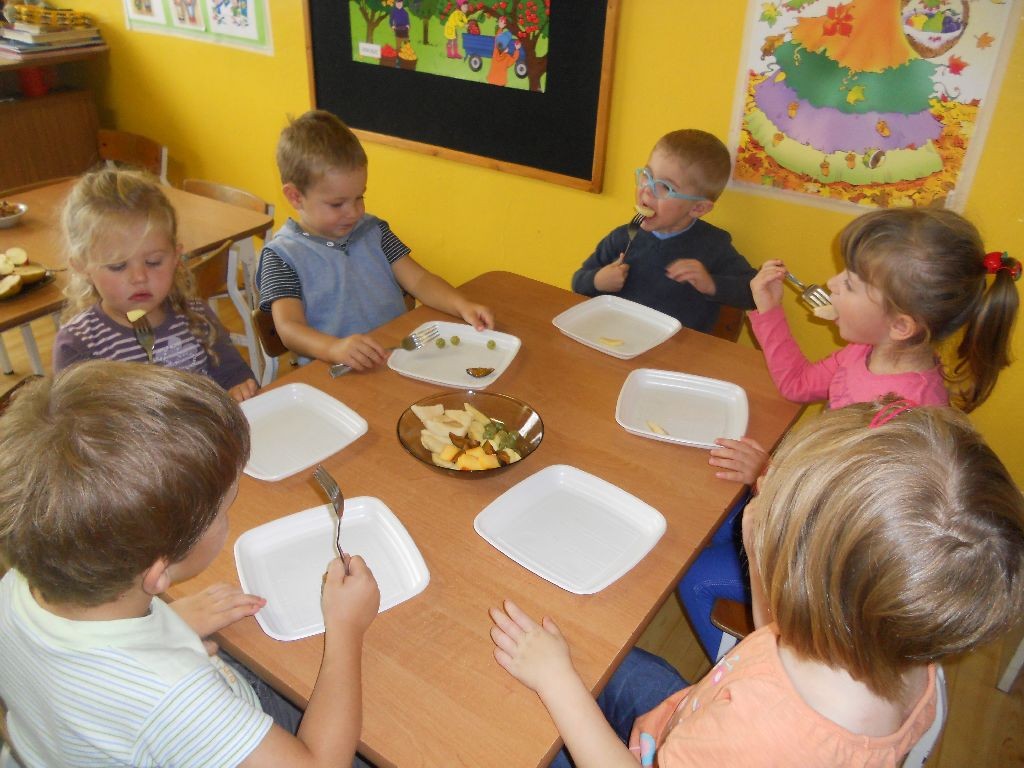 Zgodnie ze słowami wiersza „Co lubimy” – „Lubimy jabłuszka i słodkie gruszeczki na śliwki jesteśmy wielkie łakomczuszki…”. Dzieci z grupy I przy okazji omawianej tematyki o owocach odbyły wycieczkę do sadu, kolorowały owoce, smakowały owoce i wcielały się w rolę owoców podczas zabaw rytmiczno-tanecznych. W sadzie nauczycielka przybliżyła im wiedzę na temat jabłoni, gruszy i śliwy. Przedszkolaki z bliska mogły zobaczyć drzewa owocowe i przynieść owoce do przedszkola, które po dokładnym umyciu mogły skosztować.