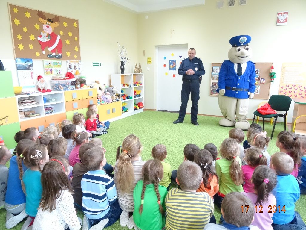 Dzieci z przedszkola w Malanowie oraz oddziału zamiejscowego w Miłaczewie odwiedził policjant z KPP w Turku asp. sztab. Piotr Kąciak, któremu towarzyszył sierżant „Pyrek”. Goście przybliżyli przedszkolakom zasady bezpiecznego zachowania w domu, podczas zabaw, wobec nieznajomych w kontekście nadchodzących świąt i nowej pory roku. Pan policjant przypomniał dzieciom o konieczności przestrzegania zakazów obsługiwania urządzeń elektrycznych, zabaw przedmiotami łatwopalnymi, wybuchowymi itp. Miał okazję przekonać się czy przedszkolaki znają zasady prawidłowego poruszania się po zmroku w terenie niezabudowanym oraz bezpiecznego podróżowania w samochodzie i autobusie. W oczekiwaniu na zimę dzieci poznały również zasady bezpiecznych zbaw na śniegu i lodzie. Ponadto zaobserwowały wygląd policyjnego munduru i akcesoriów. Goście przypomnieli też przedszkolakom numery telefonów alarmowych oraz zapoznali z procedurą zawiadamiania odpowiednich służb w razie wypadku. Dzieci z zainteresowaniem słuchały, obserwowały i zadawały pytania. Pyrek wzbudzał wiele emocji wśród wszystkich przedszkolaków, zwłaszcza tych najmłodszych, które spotkały się z nim po raz pierwszy. Było to dla nich dużym przeżyciem i mamy nadzieję, że będą stosowały się do zasłyszanych rad i wskazówek. Na zakończenie spotkania goście obdarowali wszystkie dzieci słodyczami.