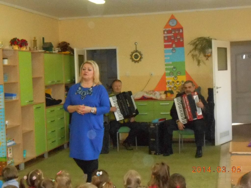 Marcowa audycja muzyczna przybliżyła dzieciom instrument z grupy instrumentów dętych - akordeon. Prowadzący spotkanie omówił budowę i sposób gry na nim. Do udziału w audycji został zaproszony pan Sławomir Ostrowski, który wykonał utwory na akordeonie: „Walczyk francuski”, „Tango argentyńskie”, „Polkę Dziadek” oraz „Tico Tico”. Przedszkolaki mogły również spróbować samodzielnej gry na harmonijce ustnej, która też należy do rodziny akordeonów. Słuchanie muzyki lub próby gry na instrumentach przyczyniają się z pewnością do rozwijania zainteresowań muzycznych już od najmłodszych lat.
