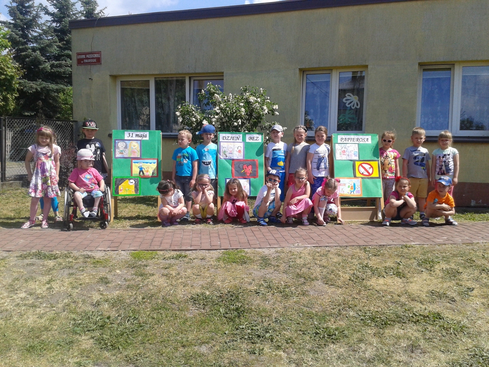 Światowy Dzień bez Papierosa obchodzony jest corocznie 31 maja. Nawet dziecko w wieku przedszkolnym wie, że papierosy szkodzą zdrowiu. Nasze przedszkole już od kilku lat stara się kształtować w swoich wychowankach postawę obrońców czystego powietrza i uczy w jaki sposób dzieci mogą poprosić swoich bliskich by na tracili ani chwili na paleniu tytoniu. W tym roku prace zniechęcające do palenia tytoniu wykonane przez dzieci z grupy IV i V mogli oglądać uczestnicy Festynu Rodzinnego zorganizowanego w naszym przedszkolu 24 maja 2016r. W kolejnych dniach odbyły się konkurencje sportowe na świeżym powietrzu oraz oglądanie wystawy dotyczącej zdrowego trybu życia zorganizowanej w Szkole Podstawowej w Malanowie.
