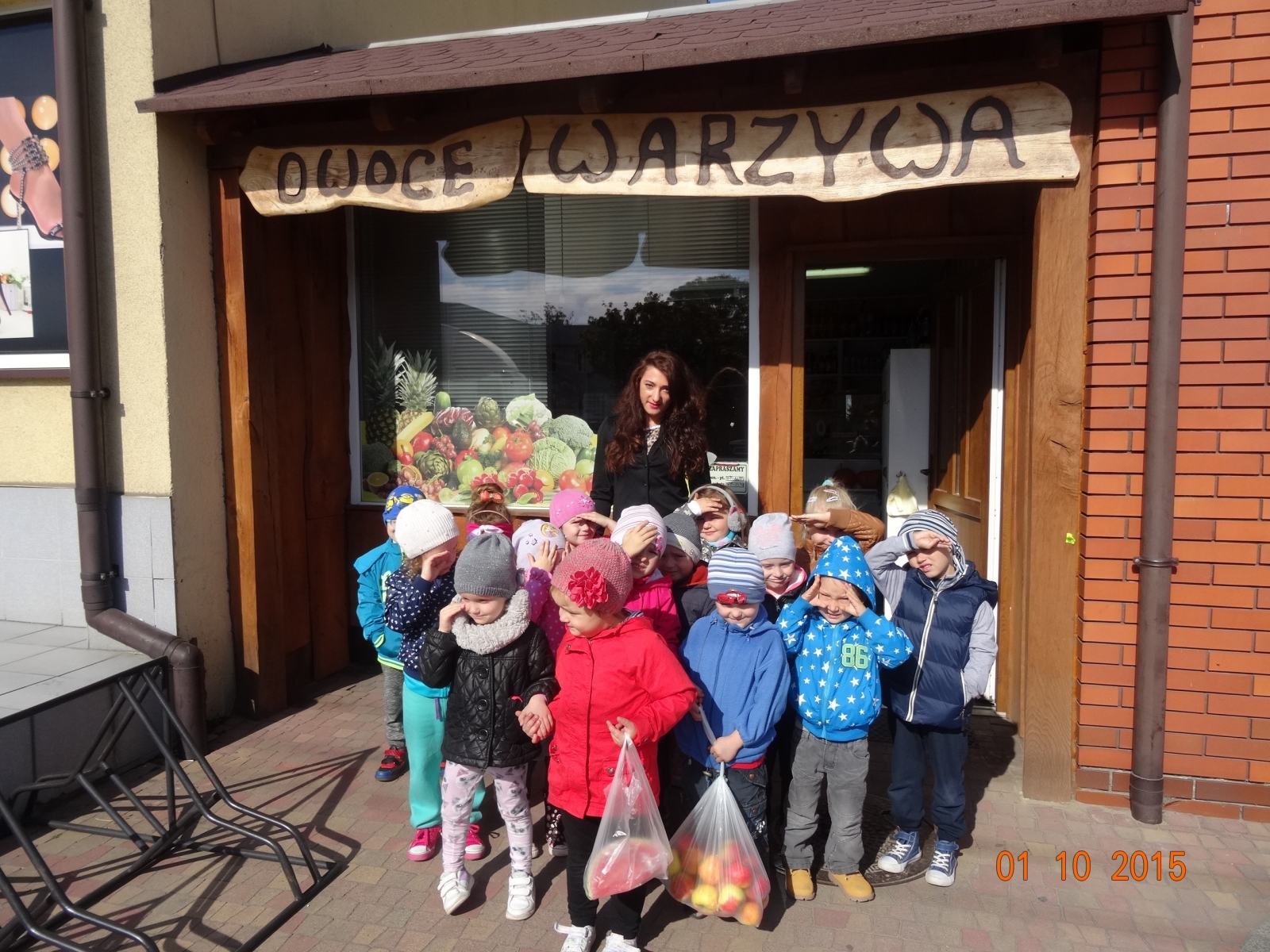 „Stoi jesień przy straganie, ma korzenie na sprzedanie…”. Po tygodniu owocowym w grupie III przyszła pora na poznawanie warzyw. Dzieci oglądały naturalne okazy, wymieniały ich nazwy, wskazywały części jadalne. Recytowały wiersze o warzywach znanych autorów, uczestniczyły w zabawach ilustracyjnych do utworów J. Brzechwy, J. Tuwima oraz muzycznych. 1 października przedszkolaki odwiedziły sklep warzywniczy p. Jana Woźniaka przy ul. Tureckiej. Pani Alicja Ogrodowczyk pokazała dzieciom owoce i warzywa znajdujące się w sprzedaży. Czterolatki mogły sprawdzić swoją wiedzę odgadując ich nazwy oraz pochodzenie. Obserwowały porządek panujący w sklepie, ustawione na półkach przetwory z warzyw, soki, ceny. Pani ekspedientka opowiedziała dzieciom na czym polega jej praca, a także wyjaśniła przeznaczenie i zasady działania wagi oraz kasy. Chętne dziewczynki razem z panią sprzedawczynią obsługiwały kasę. Zadowolone przedszkolaki wróciły do przedszkola obdarowane pysznymi jabłkami.