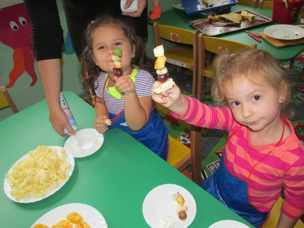 Kształtowanie postaw prozdrowotnych zaczyna się już od wczesnego dzieciństwa. Dlatego dzieci 3 i 4-letnie z grupy IX w ramach realizowanego tematu kompleksowego wzbogacały wiedzę na temat spożywania produktów potrzebnych do zachowania właściwego zdrowia. Z myślą o witaminkach, postanowiliśmy zrobić pyszny sok. Przedszkolaczki zapoznały się z urządzeniem do robienia soku, a mianowicie sokowirówką, jego działaniem oraz z niebezpieczeństwami, jakie niesie ze sobą niewłaściwe korzystanie z urządzeń elektrycznych. Po wykonaniu wszystkich czynności z wesołymi minkami degustowały przygotowane wspólnie soki. Podczas tygodnia, w którym rozmawialiśmy o owocach najwięcej radości sprawiło dzieciom przygotowanie koreczków owocowych. Mali kucharze ubrani w fartuszki z wielkim zaangażowaniem wykonywali proste czynności takie jak mycie owoców, krojenie i nadziewanie na patyczki. Przyrządzanie owocowo-warzywnych pyszności dało dzieciom wiele satysfakcji jednocześnie uświadamiając jak ważną rolę odgrywają witaminy w prawidłowym funkcjonowaniu organizmu. Przedszkolaki będą pamiętać, iż właściwe odżywianie jest niezmiernie ważne, aby móc zdrowo rosnąć.