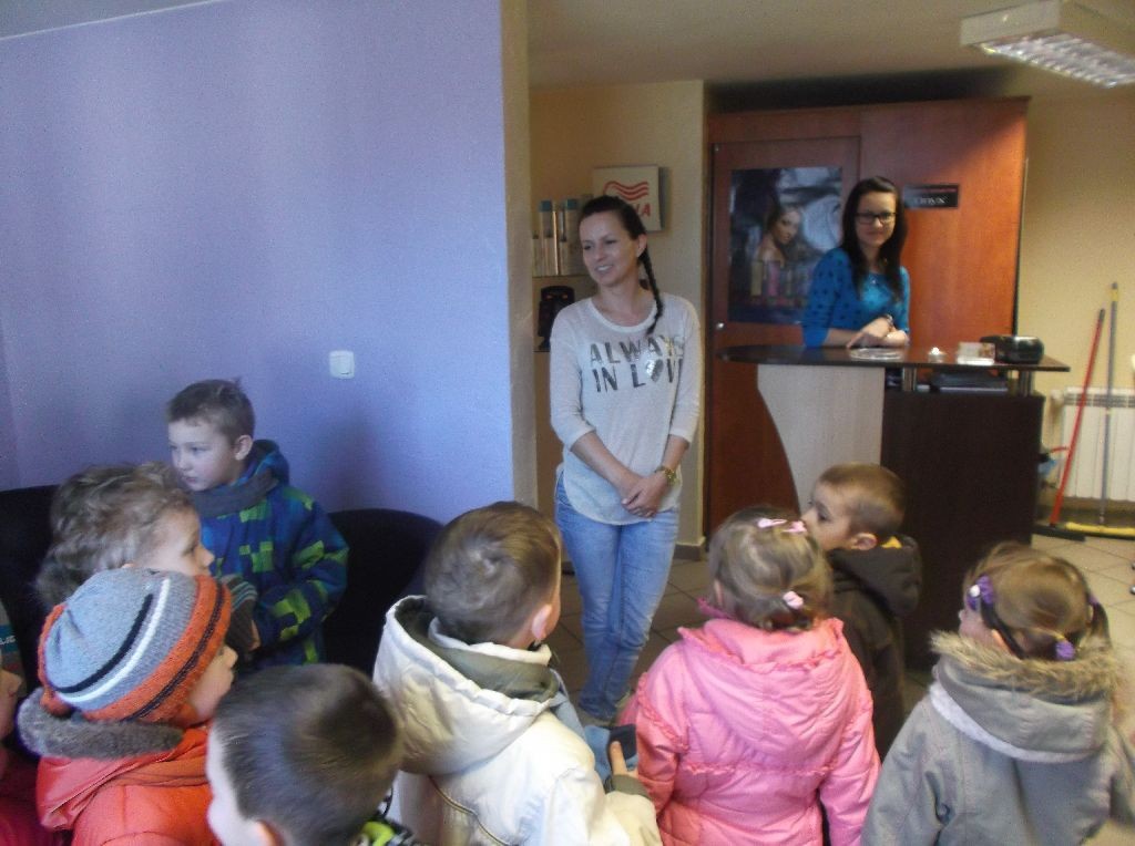 z szamponami i odżywkami i inne środki ułatwiające czesanie. Doświadczenia okazały się tym bogatsze, gdyż dzieci trafiły na moment, gdy w salonie byli klienci i można było z bliska zobaczyć obcinanie, farbowanie i mycie włosów, które wyglądało inaczej, niż w domu. Na koniec wizyty panie fryzjerki wyczarowały na głowach dziewczynek różne fryzury.