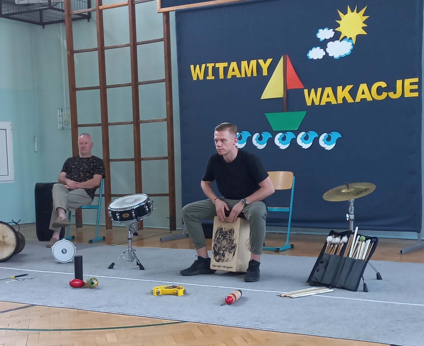 Pod takim hasłem we wtorek 20 czerwca 2023r. w naszym przedszkolu odbyła się ostatnia już w tym roku szkolnym audycja muzyczna Art-ES z Pabianic. Tym razem dzieci poznały bliżej nazwy, budowę i brzmienie instrumentów perkusyjnych takich jak: werbel, talerze, tamburyn, marakasy oraz shaker. Gościem specjalnym był znany i uzdolniony perkusista młodego pokolenia p. Błażej Kozłowski, który zaprezentował również dzieciom afrykański bęben djembe. Chętni mieli możliwość zagrania na wybranym instrumencie. Dziękujemy pp. Ewie i Sławomirowi Bartkiewiczom za cykliczne audycje w mijającym roku szkolnym. Zawsze cieszyły się one dużym zainteresowaniem przedszkolaków i dostarczały im wielu przeżyć. Pozwalały dzieciom w miłej atmosferze obcować z różnego rodzaju gatunkami muzycznymi, instrumentami, artystami oraz wzbogaciły ich wiadomości i słownictwo.