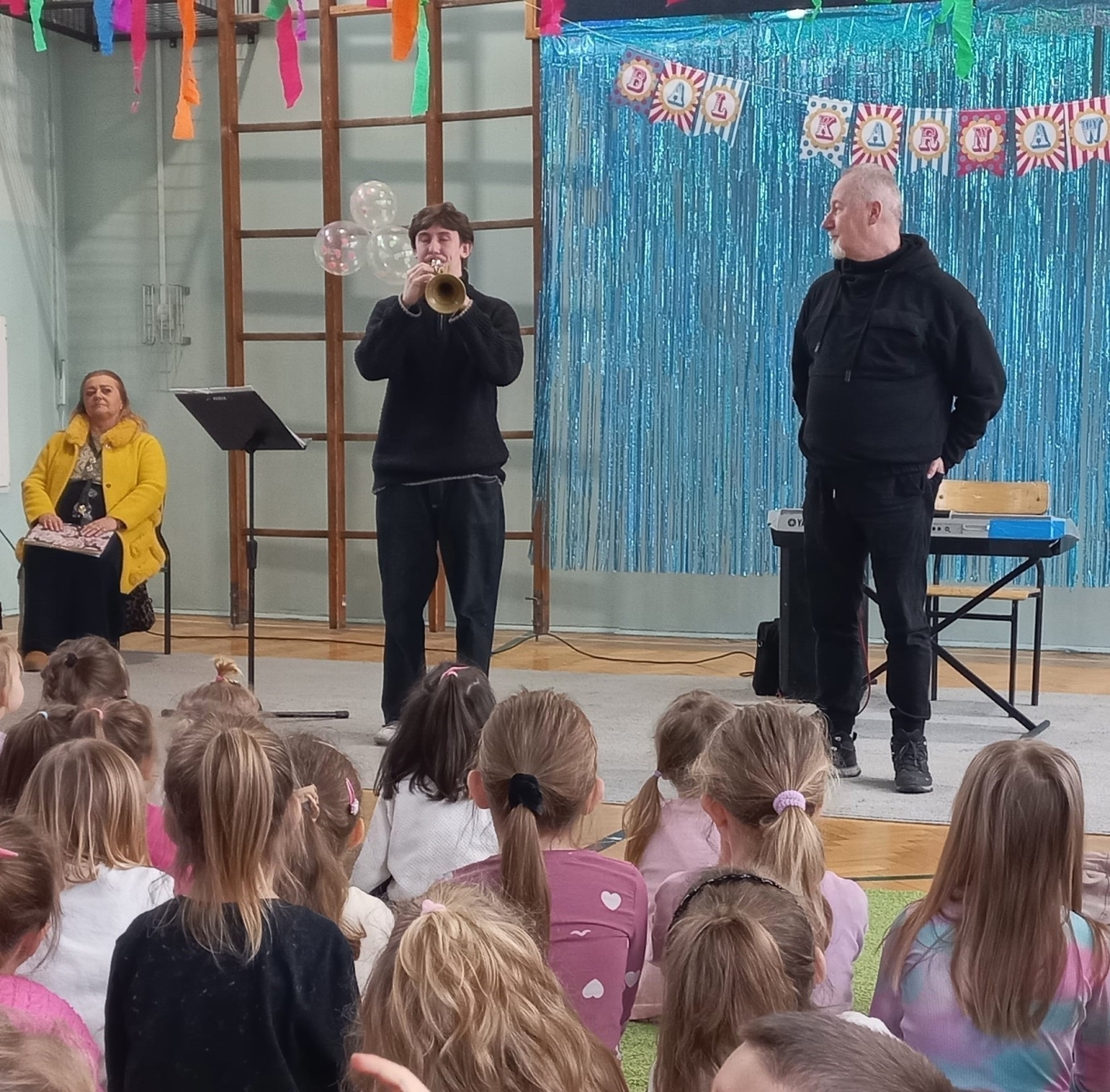 To tytuł dzisiejszej audycji muzycznej. Państwo Ewa i Sławomir Bartkiewiczowie z Art.-ES z Pabianic odwiedzili nasze przedszkole w towarzystwie grającego na trąbce p. Michała Gałązki. Wszyscy wysłuchali melodyjnych utworów w wykonaniu muzyków. Były to m.in. „Amazing Grace”, „My Way”, motyw muzyczny z filmu „Piraci z Karaibów”, „Marsz triumfalny” z opery „Aida”. Przedszkolaki dowiedziały się jak zbudowana jest trąbka i do jakiej grupy instrumentów należy. Szczególną ciekawość wzbudziły zaprezentowane przez muzyków tłumiki, ich nazwy oraz efekty dźwiękowe pojawiające się podczas gry na trąbce z ich wykorzystaniem. Art.-ES jak zwykle w ciekawy sposób wprowadziło dzieci w świat muzyki, poszerzając przy okazji ich wiedzę o trąbce.